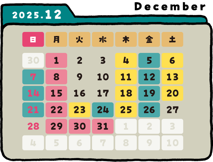 スケジュールの都合により、実施しない日もありますので、ご注意下さい。